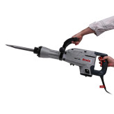 محصول پیش روی شما چکش تخریب 14 کیلوی رونیکس میباشد. این چکش تخریب با کیفیت بسیار مطلوب و تحت استانداردهای روز دنیا تحت عنوان مدل 2814L به بازار عرضه شده است. منبع تغذیه این ابزار برق بوده و ولتاژ آن بین 220 تا 240 ولت است. وزن این دستگاه 14 کیلوگرم و توان آن 1600 وات است. قدرت موتور بالا و وزن سنگین این محصول باعث شده است تا در دسته ابزار آلات صنعتی قرار بگیرد و مصرف آن برای انواع پروژههای صنعتی مناسب باشد. قدرت بسیار زیاد موتور این محصول باعث شده است تا چکش دارای قدرت بسیار زیادی جهت تخریب داشته باشد، توان ضربه این چکش 45 ژول است. این چکش تخریب که با سیستم روغنی طراحی گردیده است به کمک آچارهای همراه آن به سادگی توسط کاربر قابل سرویس کاریست که شامل روغنکاری دوره ای و تعویض ذغال میباشد. در این پیکور برقی رونیکس از بلبرینگهای ضد غبار و اورینگ و پکینگهای مقاوم در برابر حرارت جهت بالا بردن عمر دستگاه استفاده کرده است. 2814L مجهز به سنبههای میانی، ضربه زن، شاتون و سیلندر ساخته شده از بهترین آلیاژ و مواد اولیه است که نتیجتا دوام و عمر دستگاه را بالا خواهد برد