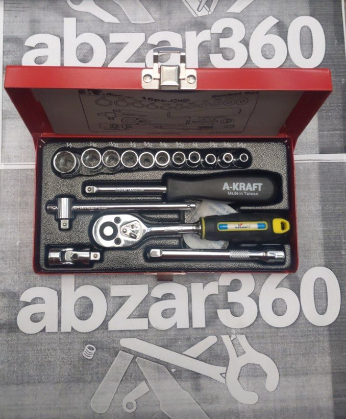 آ-کرافت (A-KRAFT) یکی از بزرگ ترین تولید کننده های ابزارآلات دستی در کشور تایوان می باشد که تمامی فرآیندهای طراحی ، تولید و بسته بندی محصولات این کمپانی تماما در خاک کشور تایوان انجام می شود . جعبه بکس 16 پارچه درایو 1/4 اینچ مدل 922016 از محصولات آ-کرافت می باشد که دارای شماره بکس های 5/32 ،3/16 ، 7/32 ، 1/4 ، 9/32 ، 5/16 ، 11/32 ، 3/8 ، 13/32 ، 7/16 ، 1/2 می باشد. همچنین لوازم : دسته پیچ گوشتی ، رابط کمکی 100 میلیمتر و لقلقه 90 درجه و رابط کشویی نیز درون مجموعه قرار دارند. آلیاژ این محصول از جنس کروم وانادیوم است .